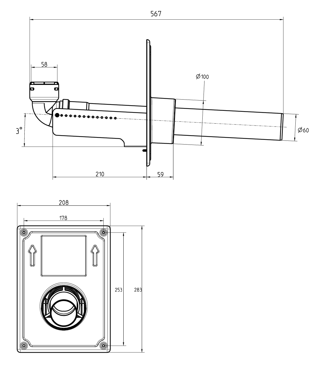 - Buitendiameter aansluiting 2: 100 mm