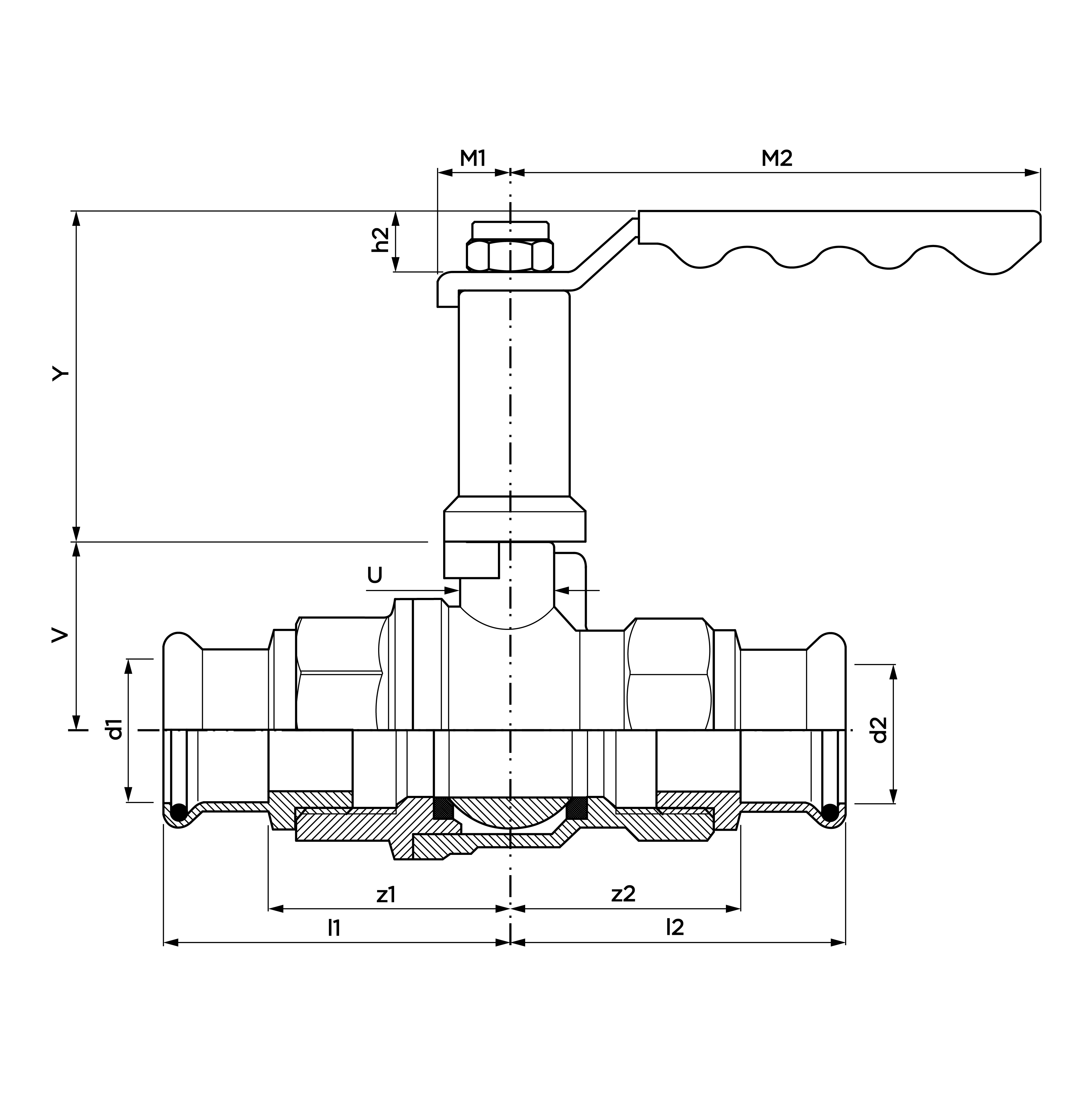 Kogelkraan XPress PS550EL messing met verlengde spindel 28mm 2x pers DN25 VSH