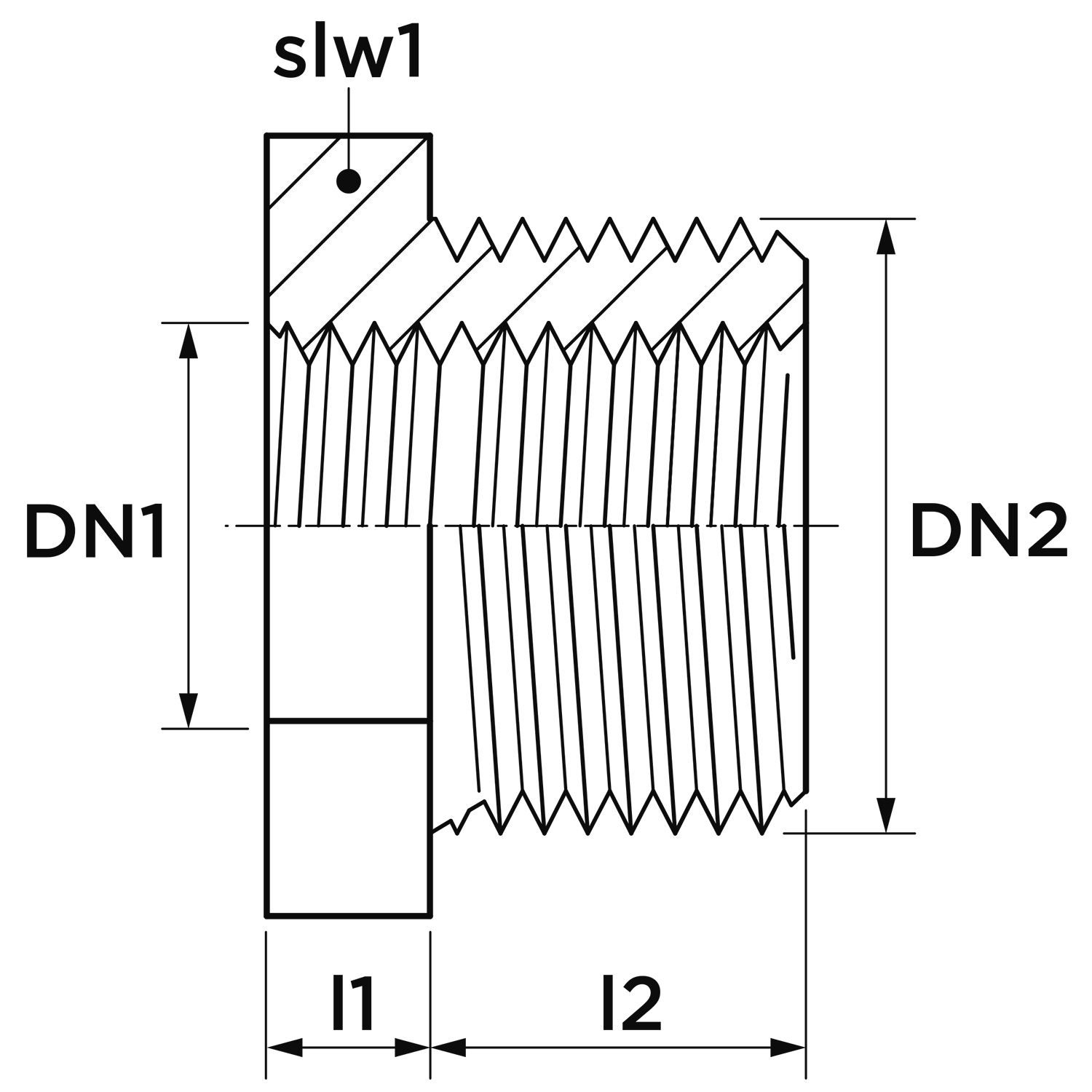 • Uitwendige buisdiameter aansluiting 2: 21,3 mm