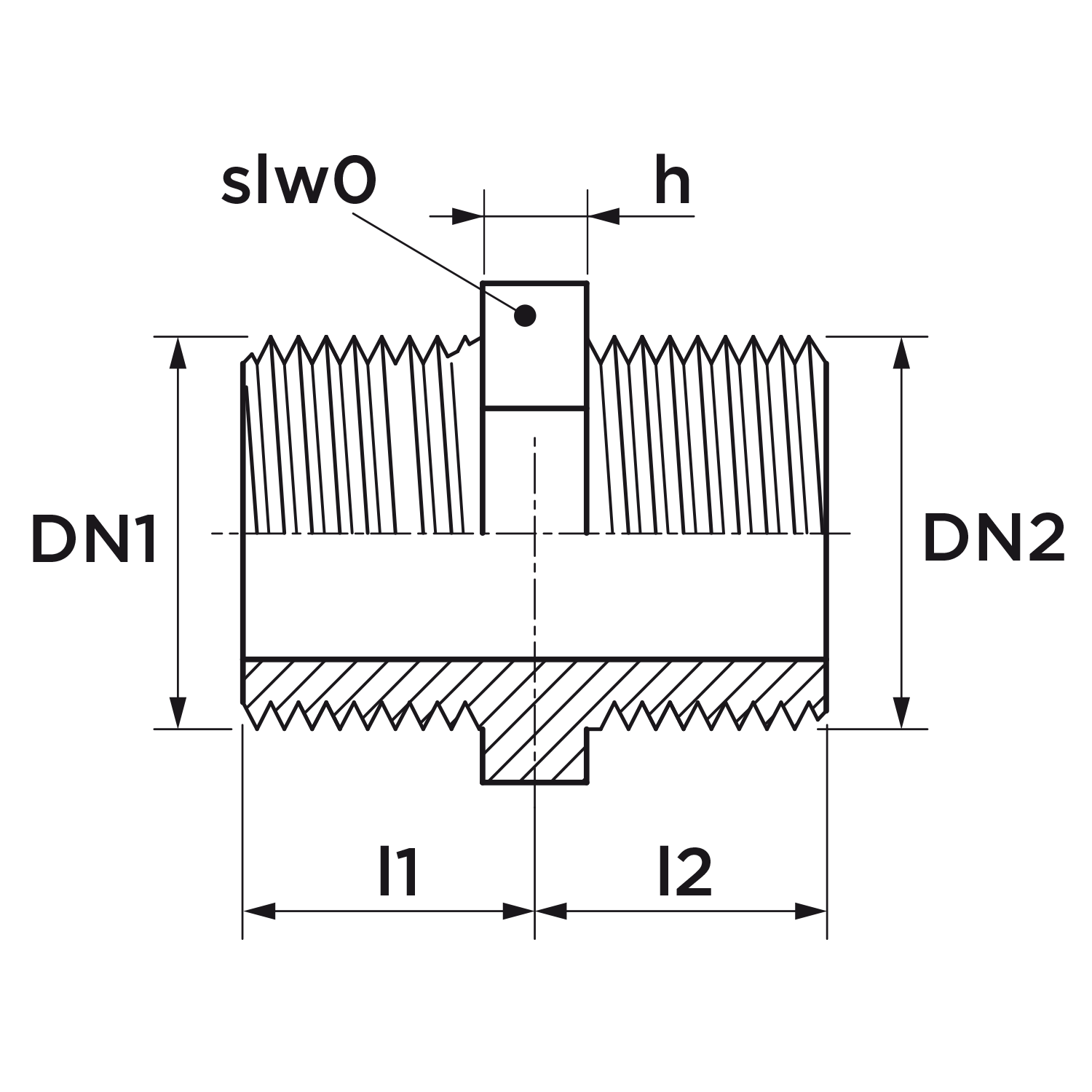 - Uitwendige buisdiameter aansluiting 2: 21,3 mm