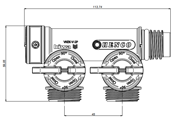 Kunststof leidingverdeler PRO-FLOW koppelbaar 2x P euroconus - draaiknoppen zwart Henco
