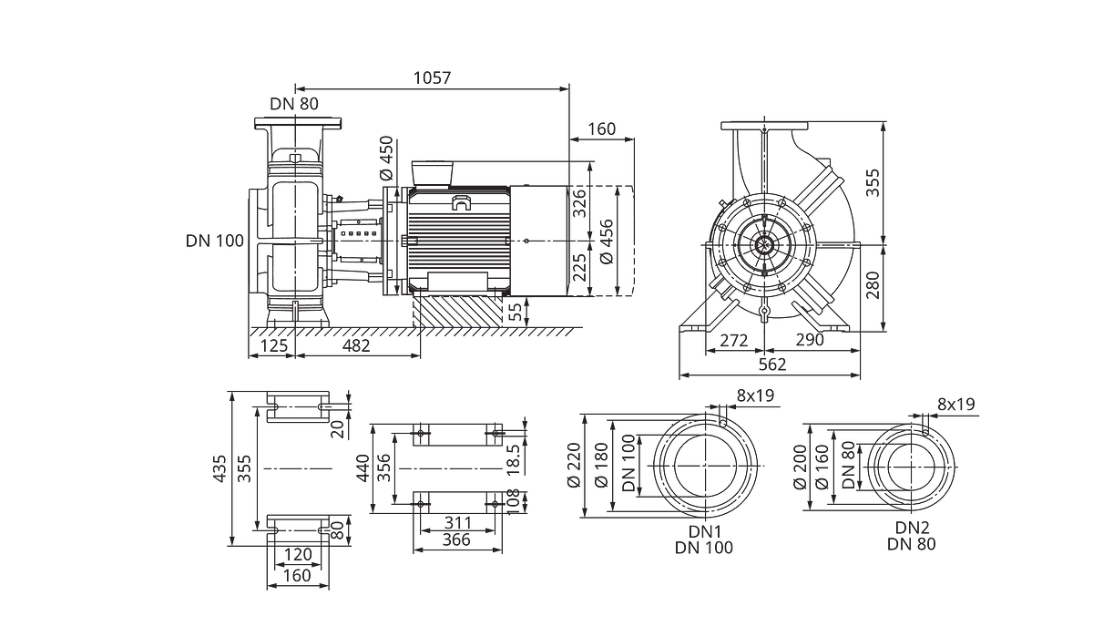 - Nom. diameter aansluiting uitlaatzijde: DN 80