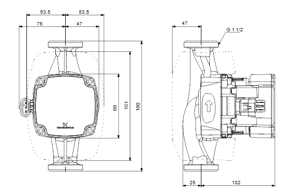 - Kwaliteitsklasse pomphuis: Gietijzer EN-GJL-150 (GG 15)