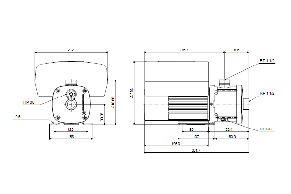- Nom. diameter aansluiting inlaatzijde: 1 1/2" (40)