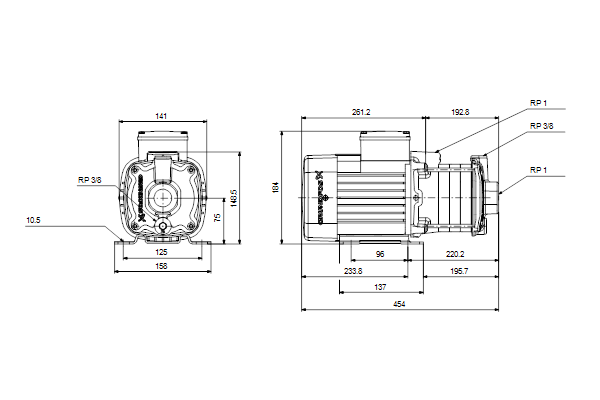 - Hoogte pomp: 454 mm