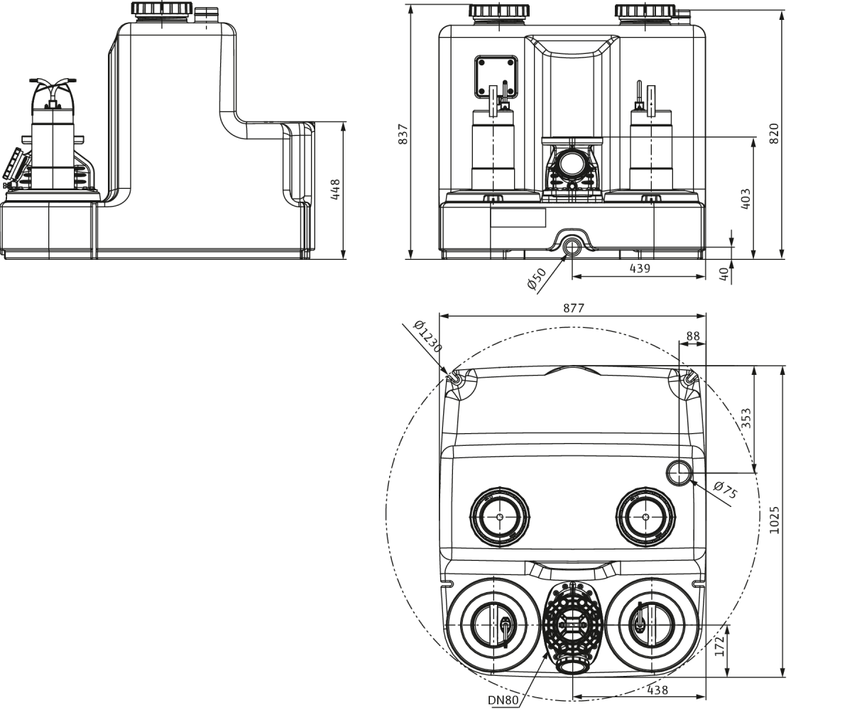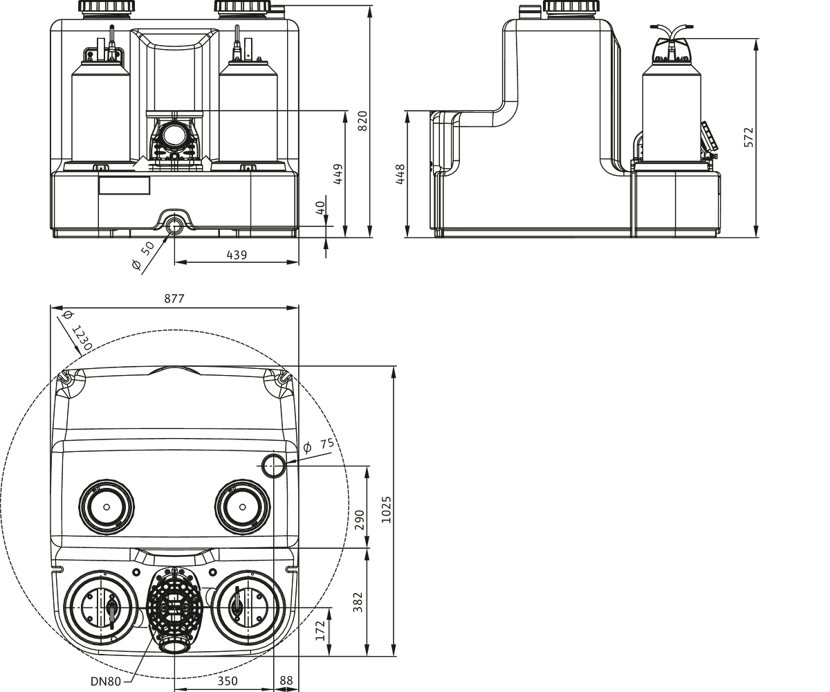 - Maattekening DrainLift SANI-XL.16/M523/4C-CEE()