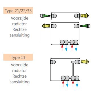 De ECO ventielradiator met seriële paneeldoorstroming (het paneel aan de voorzijde wordt eerst doorstroomd)