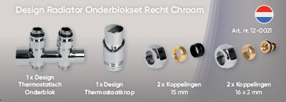 Onderblokset recht PP Radiator chroom incl. adapter M24 15mm + M24 16x2.0 Ponnoplastic
