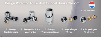 Aansluitset dubbel-haaks RH PP Radiator chroom incl. adapter M24 15mm + M24 16x2.0 Ponnoplastic